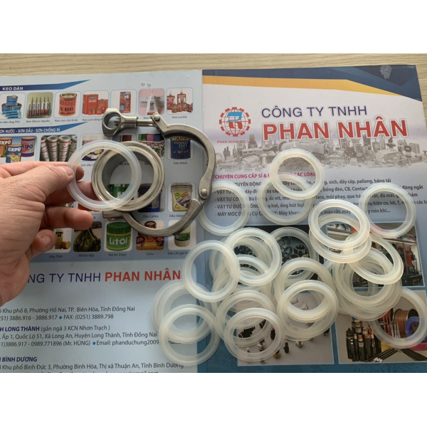 Trong cùm clamp kết nối ống có 1 cái ron silicon .Khi quý Khách hàng xử dụng thấy chất lượng ron này không tốt hay nó thường bị hư thì Quý Khách có thể thay đổi chất liệu ron này bằng PTFE chịu nhiệt-chịu dầu-hóa chất,dung môi.Chất liệu PTFE làm ron này tốt hơn-Loại ron này Công ty Phan Nhân có cung cấp.Khi mua hàng này Quý Khách Cho chúng tôi biết cái cùm clamp của Quý Khách đang sài ống phi bao nhiêu & có thề là thuộc hệ Vi sinh hay công nghiệp. Phan Nhân sẽ báo giá đúng ngay loại hàng Quý Khách cần và có thề Ship hàng trong ngày.LH 0915886.916