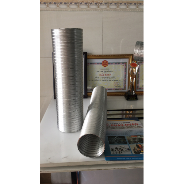 Ống nhôm nhún lò xo chịu nhiệt,đàn hồi dễ uốn cong là loại ống thường dùng để hút mùi,hút bụi ,hút hơi nóng.Nó là loại ống chịu nhiệt có khả năng làm thông các luồn hơi nóng.Là 1 loại ống trọng lượng nhẹ,dễ uốn cong nên rất dể thi công.Loại ống này Phan Nhân có Cơ sở Sản xuất-Hàng tồn có sẵn phi 80mm-100mm-125mm-150mm-200mm-250mm-LH 0915.886.916